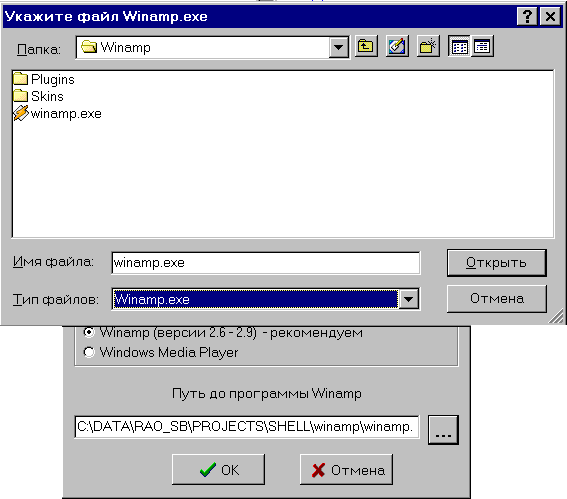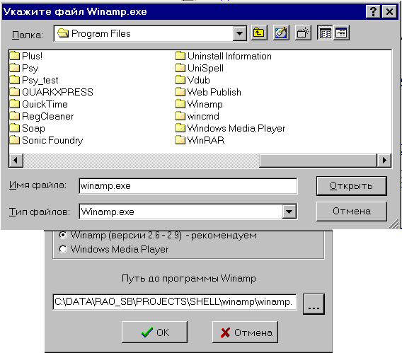 Не гарантируется правильная работа оболочки при использовании аудиоплеера WinAmp версии 3.хх !