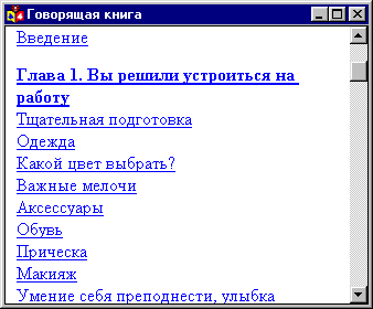 Это окно предназначено для отображения иллюстраций и/или текста книги, соответствующего звучащему фрагменту. Если звучащему фрагменту на диске не предназначен ни один иллюстративный фрагмент, то в окне будет отображаться стартовое меню HELP.